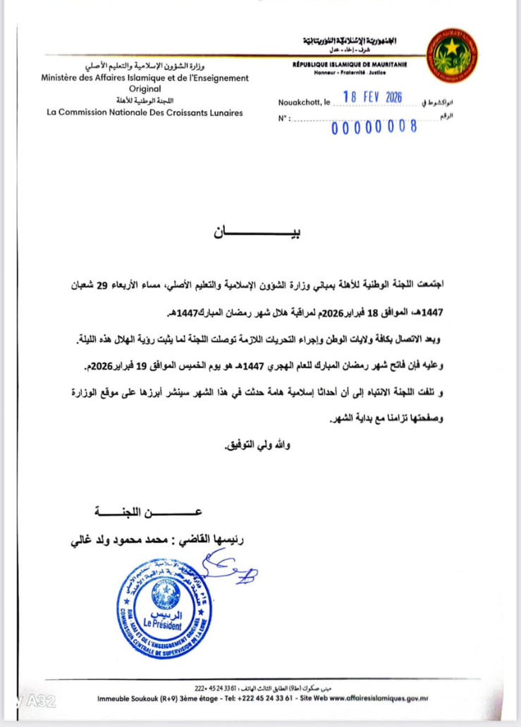 وبناءً على ذلك، سيكون فاتح شهر رمضان يوم الخميس 19 فبراير 2026.