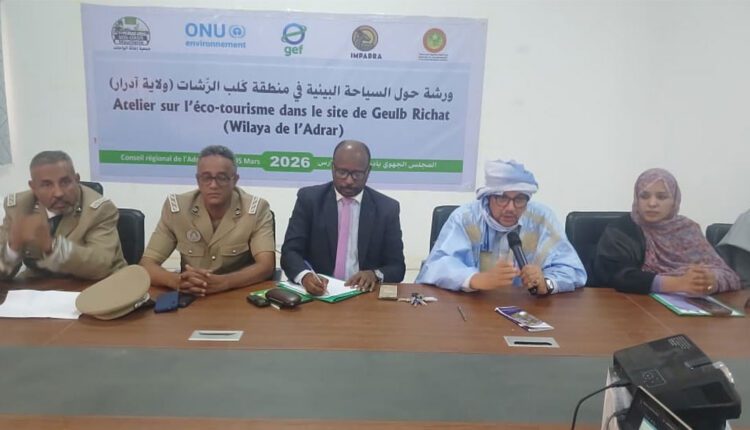 أشرف مستشار والي آدرار المكلف بالشؤون الاقتصادية والتنمية المحلية، السيد ولد صام، اليوم الخميس بمدينة أطار، على اختتام فعاليات ورشة تكوينية حول السياحة البيئية في منطقة گلب الريشات، نظمتها وزارة البيئة والتنمية المستدامة، وذلك بمباني جهة آدرار.